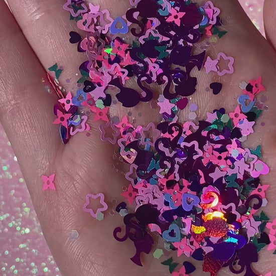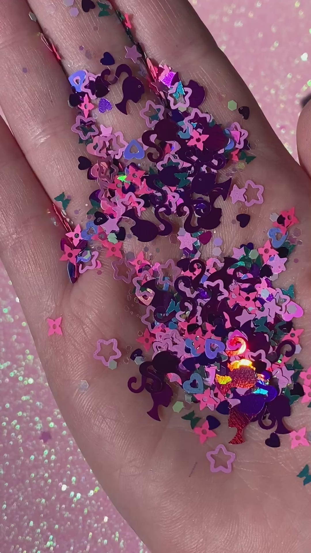 Unleash your inner doll with Barbiecore, the ultimate kawaii glitter mix that sparkles with pink perfection! This mix is packed with Barbie head glitters, butterflies, designer logos, and sweet hearts, all drenched in high-shine sparkle for that iconic dollcore glam. ✨
