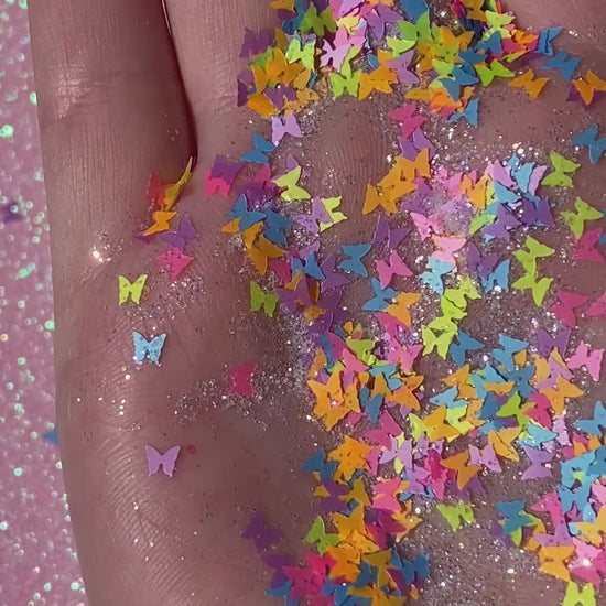 Step into full Y2K fantasy with Butterfly Clips, a kawaii neon rainbow glitter mix inspired by the iconic butterfly hair clips of the 2000s! This mix is packed with holographic sparkle and pastel pop, giving instant nostalgia with every flicker of light.