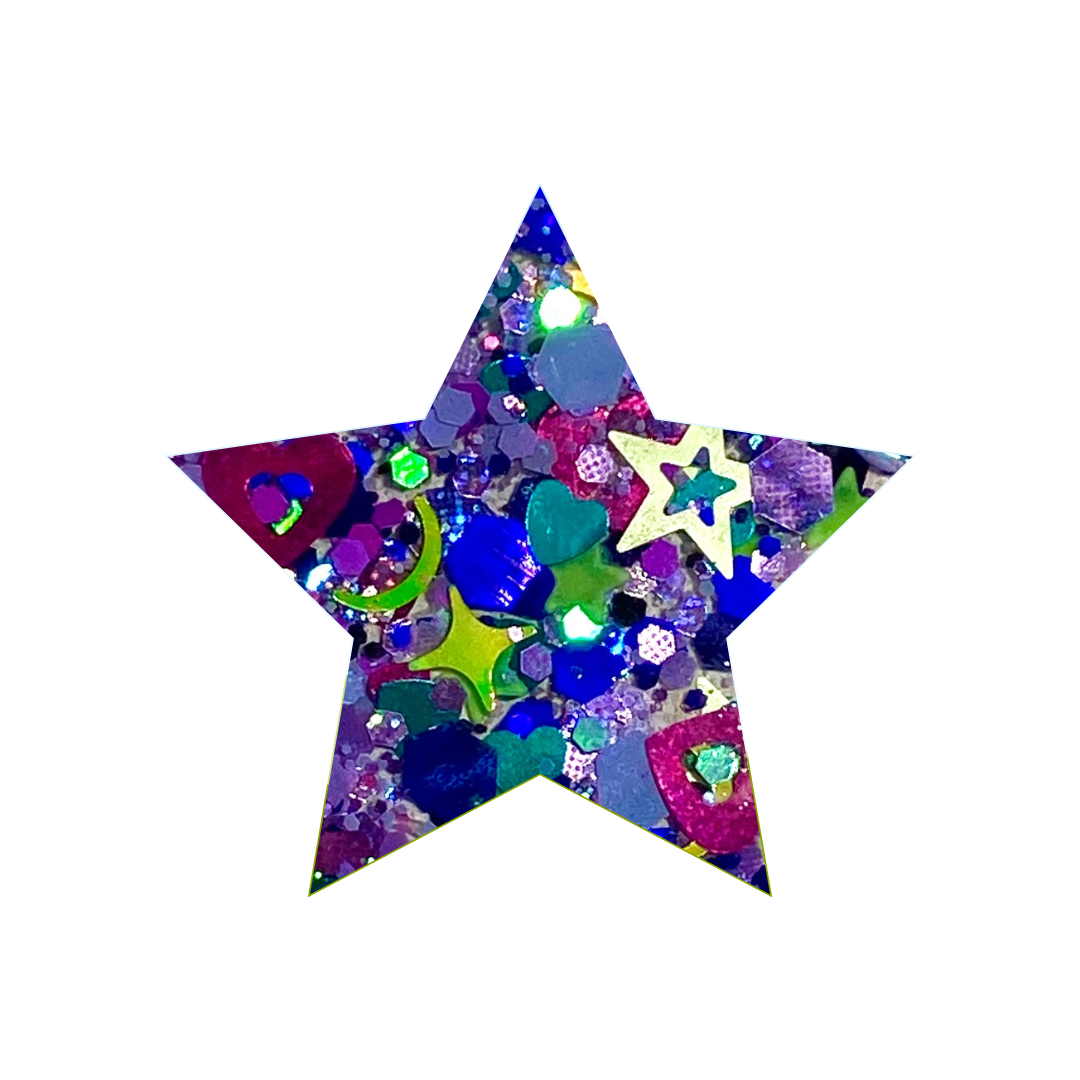 Unleash your fierce side with Clawdeen — a glitter acrylic inspired by Monster High’s bold and stylish werewolf! This mix sparkles with purple glitters, accented with pink hearts, neon green stars, and moons to capture her glowing eyes and the magic of the night sky. It’s giving wild glam meets moonlit fantasy, perfect for nails that howl with style and attitude. 💅🌌🖤