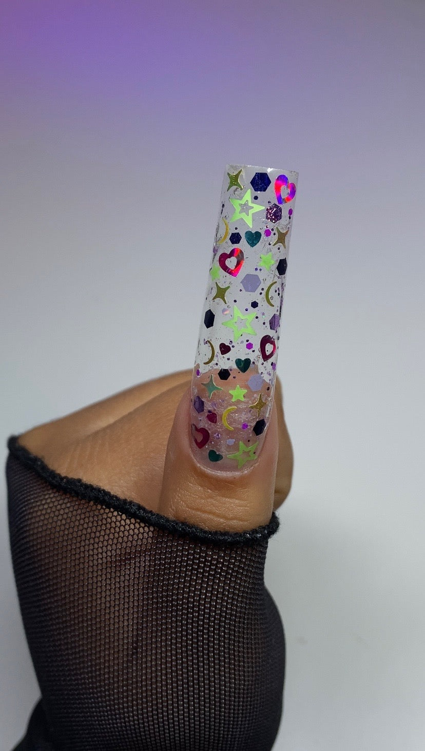 Perfect for aqua nails, gel sets, or resin art, this glitter mix captures that spooky glam meets Y2K wild child energy — bold, confident, and always slaying under the moonlight. 💜🌌💖