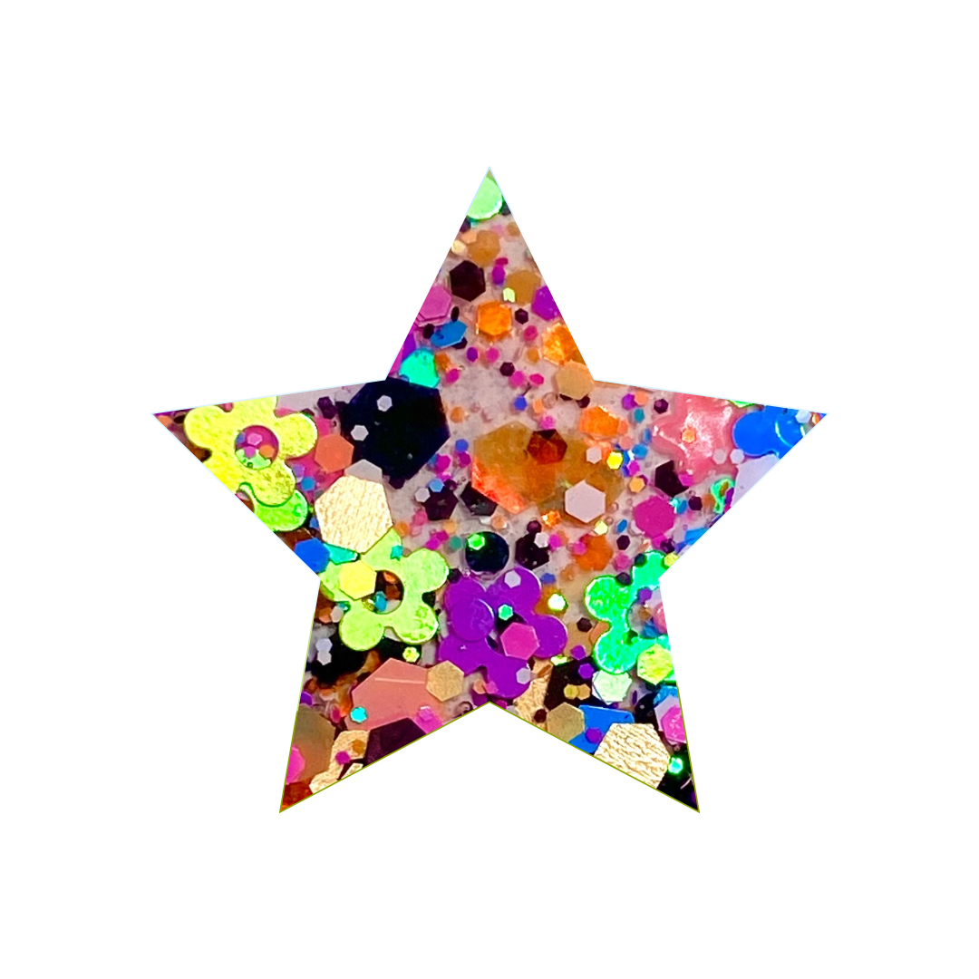 Celebrate the magic of Skelita — a glitter acrylic inspired by Monster High’s elegant Día de los Muertos ghoul! This mix dazzles with orange, black, and white glitters, sprinkled with rainbow colors to honor the vibrant spirit of the holiday, and accented with flowers, stars, and butterflies for that perfect festive flair. It’s giving spooky-chic meets colorful tradition, making every nail set a tribute to life, love, and monster style. 💅🌺🦋