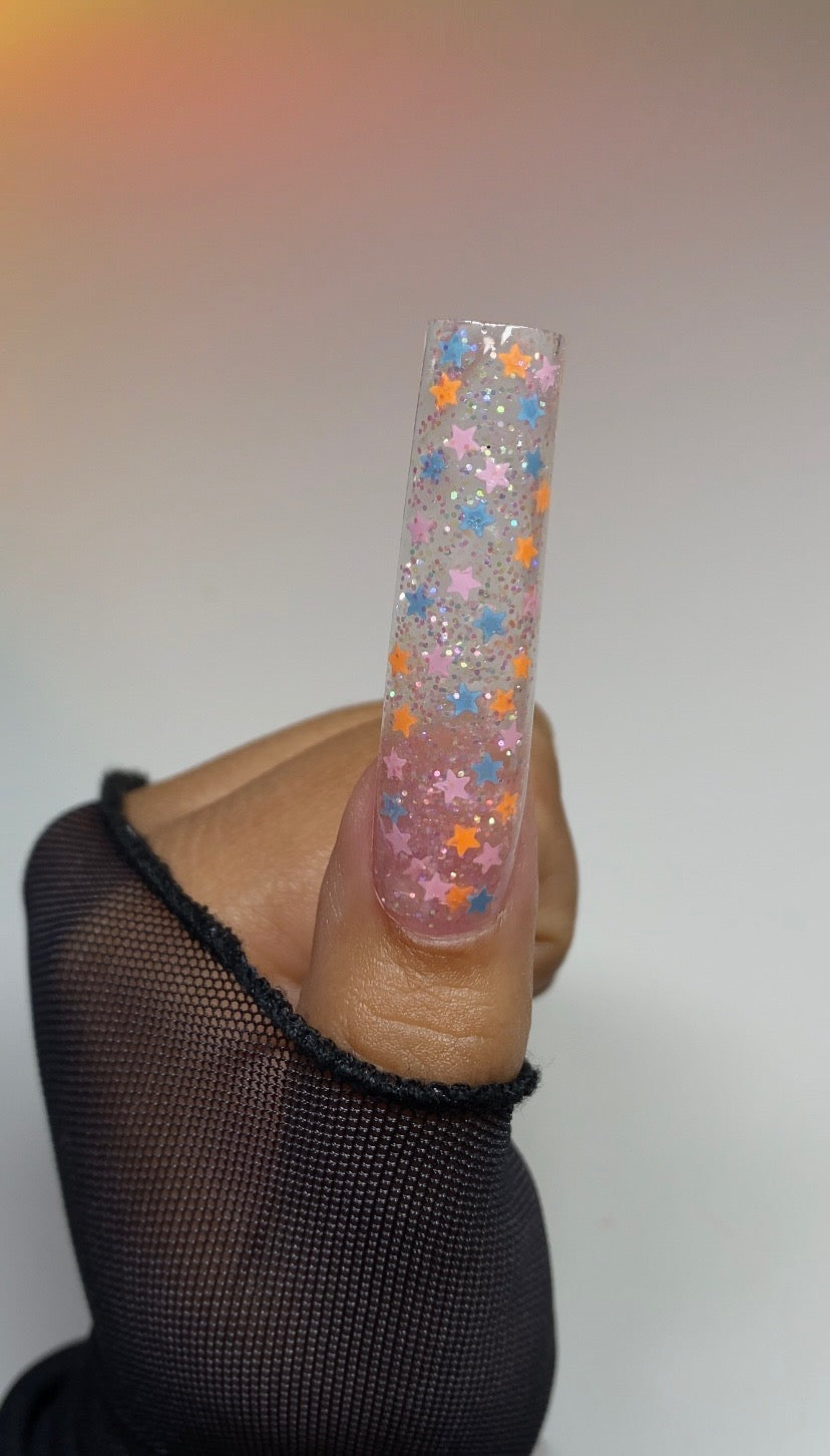 Cast your spell in sparkle with Starlit Seance — now available as a raw glitter mix for all your dreamy, spooky creations! This enchanting blend features fine purple, pink, and orange glitters in a clear base, scattered with glow-in-the-dark stars in pink, orange, and pastel blue that shimmer and glow like a haunted night sky. ✨💫🌌