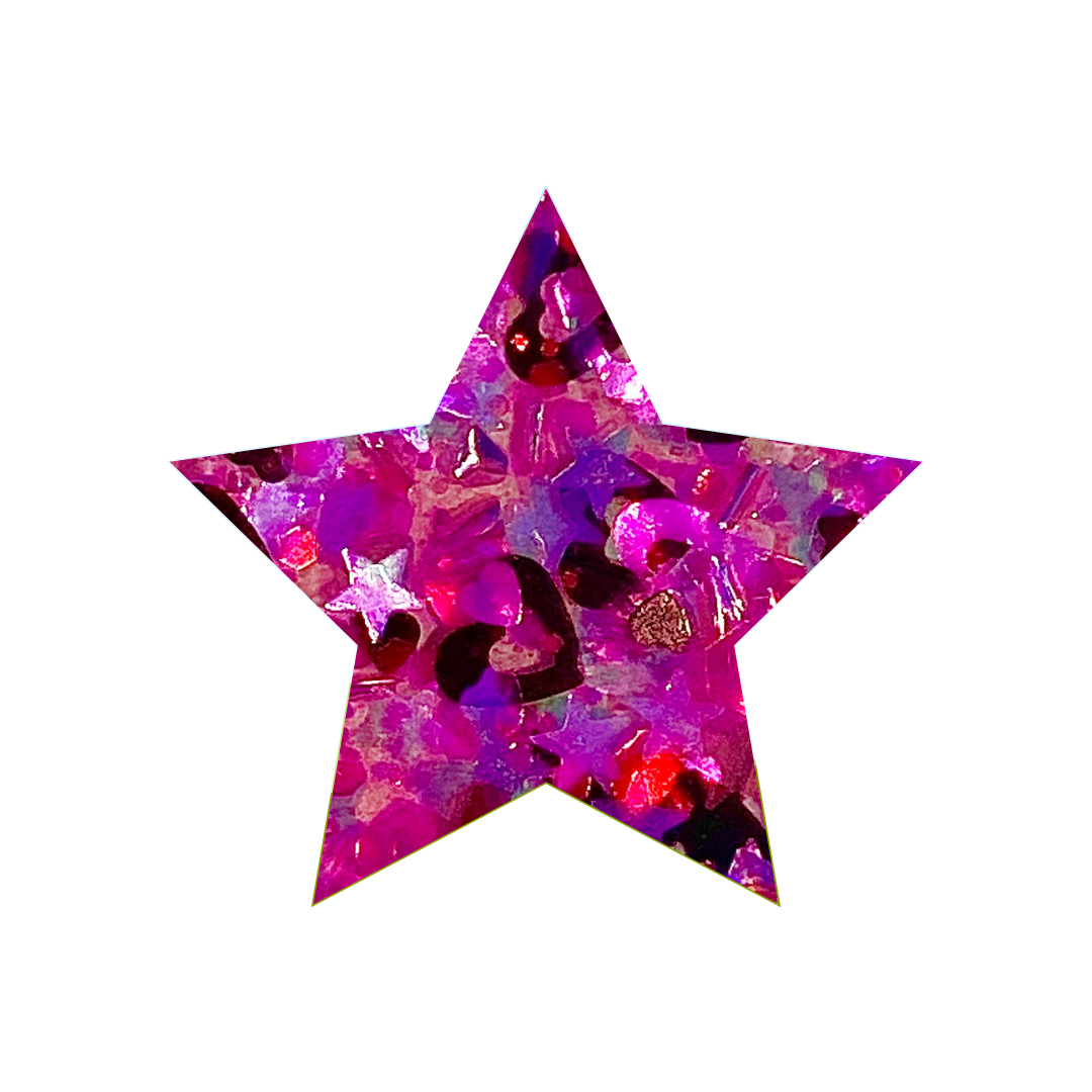 The hot pink glitter lays down rich and vibrant while the mix of shapes adds that chunky, dimensional drama your sets crave. The black hearts? That’s the attitude. That’s the “I love hard but I leave harder.”